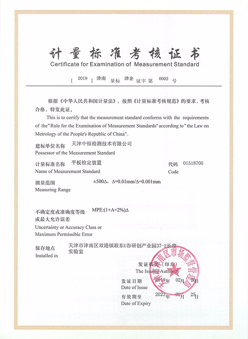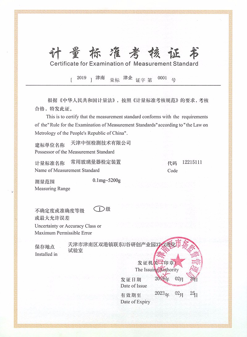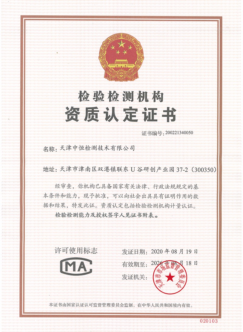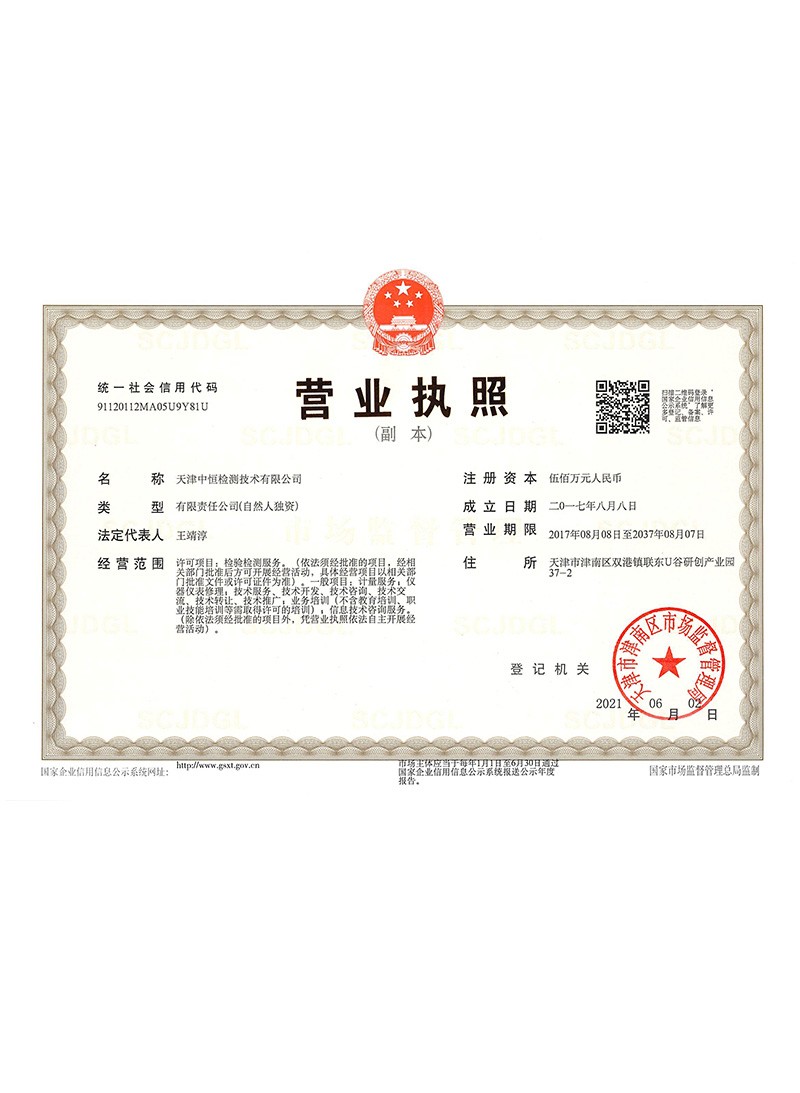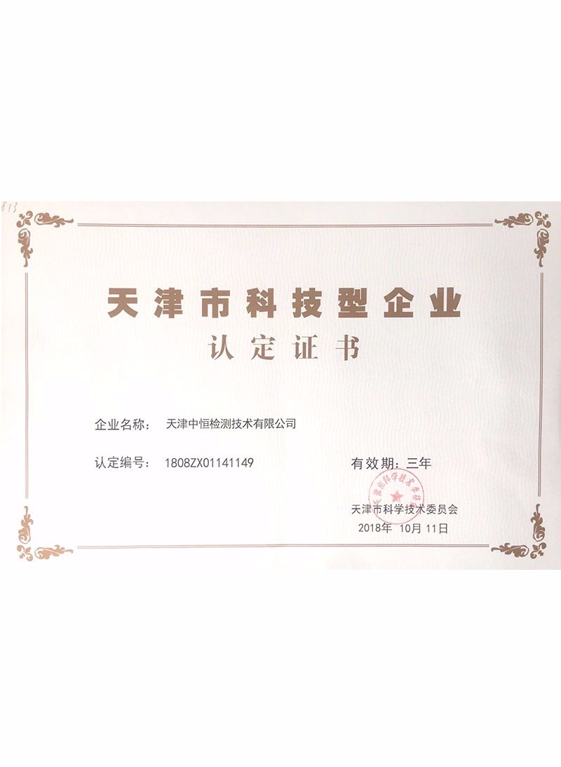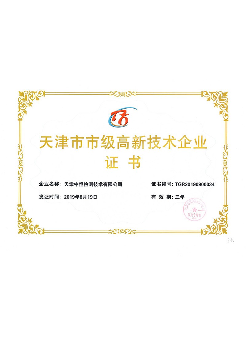 中恒檢測(cè),全稱天津中恒檢測(cè)技術(shù)有限公司,成立于2017年,占地面積1600平方米,是一家專業(yè)的第三方計(jì)量校準(zhǔn)機(jī)構(gòu),主要從事計(jì)量校準(zhǔn)、儀器維修、技術(shù)培訓(xùn)及實(shí)驗(yàn)室認(rèn)可咨詢等服務(wù),并獲得中國合格評(píng)定國家認(rèn)可委員會(huì)(CNAS)的實(shí)驗(yàn)室資質(zhì)認(rèn)可(注冊(cè)號(hào):CNAS L12902)和檢驗(yàn)檢測(cè)機(jī)構(gòu)資質(zhì)認(rèn)定(CMA證書編號(hào):200221340050)公司于2019年8月獲得了天津高新技術(shù)企業(yè)認(rèn)定、2019年11月獲得國家高新技術(shù)企業(yè)認(rèn)定,并擁有軟件著作權(quán)15個(gè),實(shí)用新型專利15個(gè),企業(yè)最高標(biāo)準(zhǔn)41項(xiàng)。